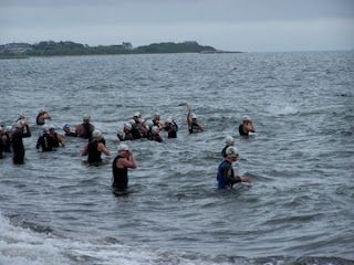 As I stood amongst the crowd of triathletes I suddenly realized just how screwed I was. This was my first open water swim. Despite the fact that the course had been shortened due to the recent awful weather I was pretty terrified. I am not too sure what I was terrified of. Perhaps it was a combination of the giant waves, swimming amongst a mass of thrashing strangers, or the threat of a random shark attack. I have no idea but I started to worry.