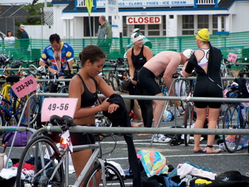 It was now time to hop on my bike and ride 10+/- miles. I was incredibly happy to be out of the water. I figured I would haul ass and be done with this leg of the race with lightening speed. WRONG. Very soon into the bike ride I realized I had not only one but two flat tires. I did not have my tire changing/patching device on me or maybe I did. I do not remember. I do remember that I did not know how to change a tire let alone two so I trudged along.